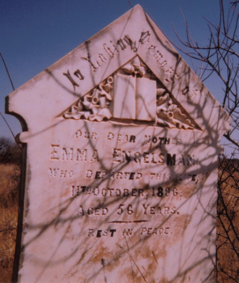 Emma married Bernard Eilka Engelsman, son of Eilke Berends Engelsman and Hindrikje Everts Drenth. (Bernard Eilka Engelsman was born on 13 Oct 1826 in Veendam, Groningen, Netherlands,4 died on 3 Nov 1894 in Klipdam, Cape Province, South Africa 5 6 and was buried in Klipdam Cemetery, Cape Province, South Africa 5.) |