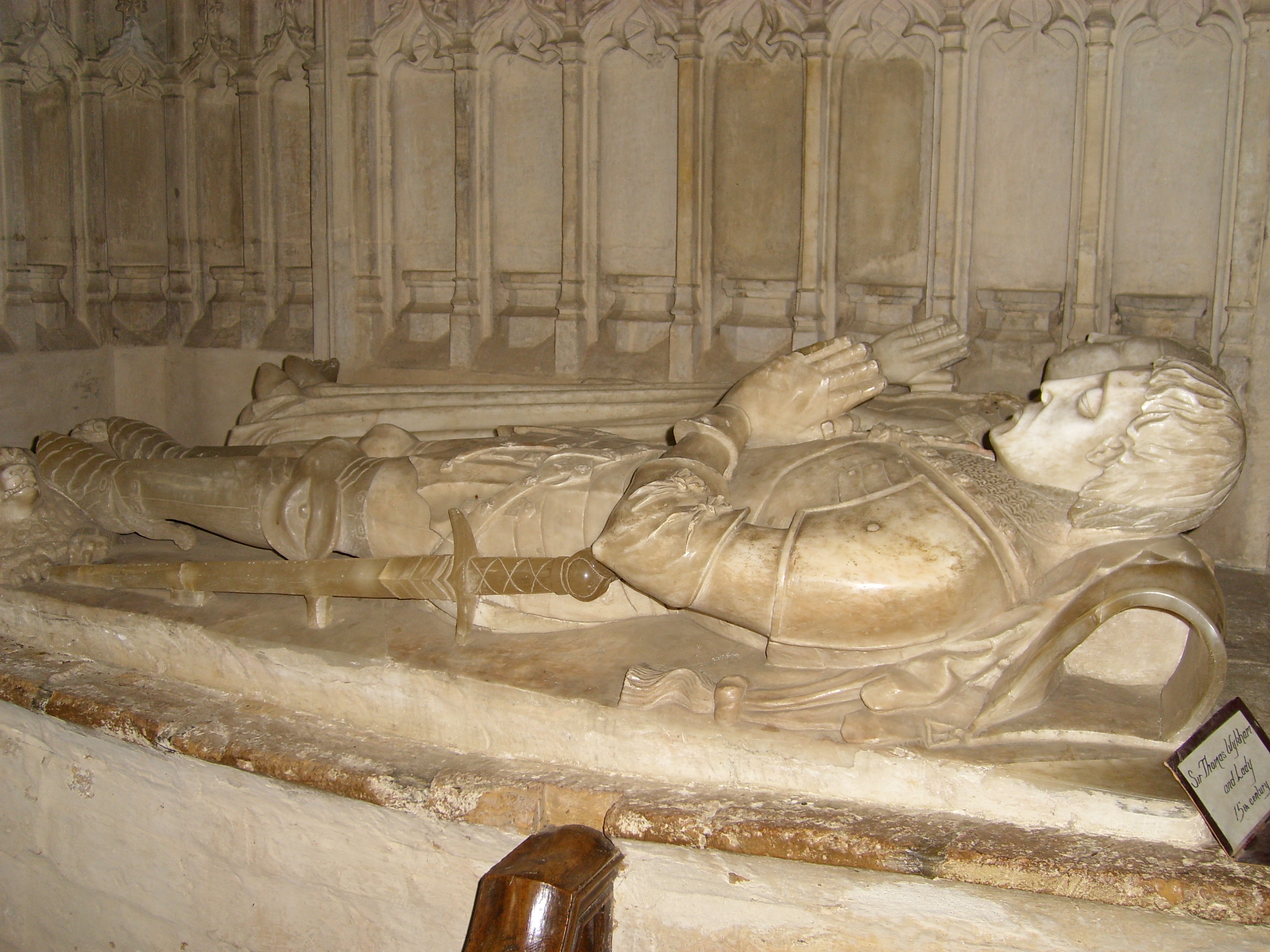 Elizabeth married Sir Thomas Wykeham, son of William Perrott and Alice Champneys. (Sir Thomas Wykeham died in 1456 and was buried in St. Mary's, Broughton, Oxfordshire.) |